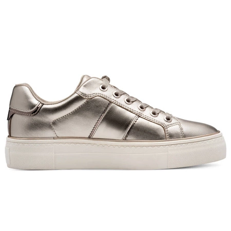 1-23724-42 933The Tamaris brand focuses on the quality of its products, using modern and durable materials and innovative technologies. Tamaris footwear has conquered not only Europe, but also the rest of the world, thus becoming one of the most recognizable footwear brands on the market. Introducing another timeless model from this brand. The upper is made of natural and ecological leather in light gold color. The sole in the form of a comfortable platform is a flexible, non-slip high-quality plastic, which perfectly insulates the feet from the ground, protecting them from the cold and moisture. The interior and molded insole are made of soft, pleasant to the touch fabric. Stabilized with traditional laces, which allow you to customize the upper. On the outer side of the upper is a gold Tamaris brand logo. Subtle gold accessories perfectly match the beige sole, giving the model a discreet elegance. If you don't have this type of footwear in your collection yet, or you would like to expand it, this model will definitely make you happy.