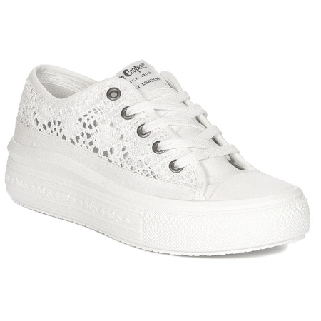 LCW-23-44-1617LSneakers, Lee Cooper women's sneakers are made of openwork fabric in white. The interior and insole were made of white fabric as well. The round toe will give the toes plenty of freedom. The traditional lace-up binding allows the shoes to fit the foot properly. Flat sole made of high-quality plastic characteristic for this type of footwear is 4 cm high. Lightweight and practical. They will perfectly complement many sports and everyday styling.
