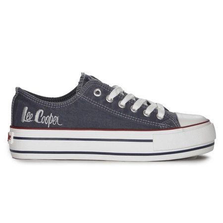 LCW-24-31-2220Founded in London's East End in 1908, Lee Cooper has a rich history spanning more than a century, earning it the cult status of Britain's Original Denim brand. From humble beginnings, the Lee Cooper brand has become known as a global style innovator. The legacy of the pioneering principles established by Morris Cooper is reflected in the latest collection of footwear, available in our online store. The Lee Cooper women's sneakers are made of fabric in navy blue. The interior and insole are also fabric. Laces allow you to perfectly adjust the shoes to your feet. The white sole made of high-quality plastic is a solid and quite high platform characteristic of sneakers, sneakers and tennis shoes, it is 4 cm high. Great shoes for the spring/summer season.