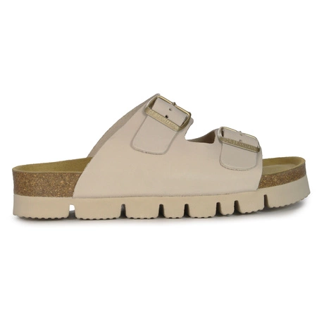 700348-81-OFFWHWelcome to our store, where you will find stylish and comfortable women's flip-flops from Dr. Brinkmann! These flip-flops are made of high-quality nubuck leather in a beautiful Off White color, giving them an elegant and fashionable look. The insole made of soft natural leather provides comfort and proper support for the feet. The sole of the flip-flops is made of high-quality plastic, ensuring durability and long-lasting use. Thanks to the 2-cm heel, the flip-flops are light and comfortable, while at the same time providing adequate support to the feet.The flip-flops are fastened with two buckles, which allows you to easily and quickly adjust them to the shape of the foot.These flip-flops are ideal for any woman who appreciates comfort and style. They are perfect for warm days, when you need light and airy footwear. They will be a great choice for a walk around town or a day at the beach. Find your favorite pair today!