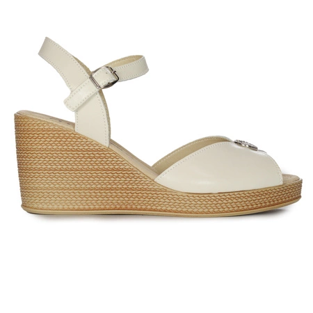 DS6026/24 ECIntroducing the latest model of women's sandals by Filippo, which will delight any woman. The upper of the sandals is made of natural leather in a beautiful beige Ecru color. The interior is made of leather-like material and natural leather. The insole is also natural leather. The 8 cm high heeled sole on the heel is made of high-quality plastic.