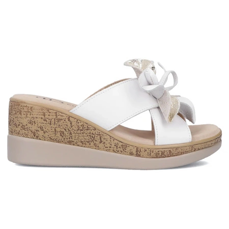 DK7039-25-WHWomen's flip-flops in an elegant white color by Filippo are a great choice for the Spring/Summer 2025 season. Made of high-quality material, they provide comfort and durability, and their unique design adds lightness to any styling. Comfortable, open flip-flops with a round toe perfectly fit the foot, providing comfort all day long. A stable 7 cm wedge makes this model add elegance without sacrificing comfort while walking. The leather insole and interior provide softness and comfort, and the strap at the top keeps the foot in a stable position. Thanks to their universal white color, these flip-flops go perfectly with both summer dresses and everyday stylings. This is the perfect choice for women looking for elegant and comfortable footwear for warm days.