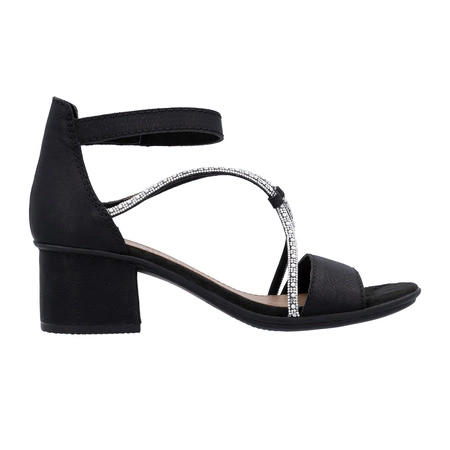 64654-00Rieker women's heeled sandals in black are an elegant and comfortable choice for the Spring-Summer 2025 season. Made from high-quality synthetic material, they offer durability and all-day wearability. Featuring a closed heel and a round, open-toe design, they provide a timeless and stylish look. The 5 cm block heel enhances the silhouette while ensuring stability and comfort. A strap fastening allows for a secure and adjustable fit. The interior and insole, crafted from premium synthetic material and fabric, enhance foot comfort. A perfect choice for women who appreciate elegance and comfort in both casual and evening outfits.