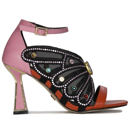 S-199 PINK-REDWomen's stiletto sandals by Sca'viola, which are the perfect choice for the upcoming spring and summer days. The upper is made of natural leather and plastic in pink, red and black. The insole is made of natural leather, while the interior is made of eco-friendly leather. The sole is made of high-quality plastic on a 9 cm stiletto heel, which not only provides comfort, but also adds elegance. The upper is decorated with beautiful multi-colored zircons. Thanks to the buckle, the sandals are easy to adjust to the foot. These sandals are the perfect choice for various occasions, from summer walks to evening outings. Their beautiful design and comfort will make you feel confident and stylish. Don't miss the opportunity to have them in your closet.
