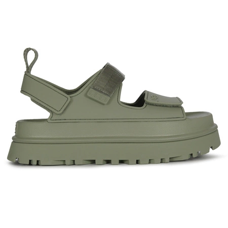 1152685 SDCUGG is an Australian brand that creates footwear from natural lambskin and sheep's wool of the highest quality. However, the collections of this brand are not only proposals for winter, but also models that will work as a complement to summer styling. An example of this are unconventional women's platform sandals. The upper is high-quality plastic in "Shaded Clover" green color. The interior is made of fabric, and the insole is made of high-quality plastic. The model is fastened with hook-and-loop fasteners, thanks to which you can perfectly adjust the footwear to individual needs. Comfortable, well-shaped insole and a 5 cm high platform, make you feel very comfortable in them. A subtle decoration of this model is the embossed logo on the sole and on the Velcro strap. Modern and very comfortable, they will be a great addition to summer styling. They should find their way into your closet today, so you can enjoy them all summer long.