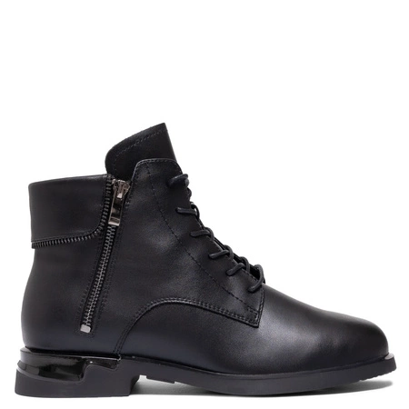 Sokolski Trzewiki Damskie Lakierowane Botki na Suwak i Sznurowane Czarne CH-Z25-90-BLK-L