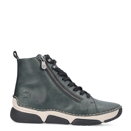 Rieker Ocieplane Trzewiki Damskie Sznurowane z Zamkiem Niebieskie 45920-54-BLUE