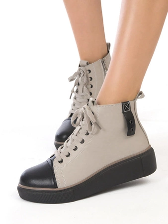 Artiker Botki damskie skórzane ocieplane na platformie Black