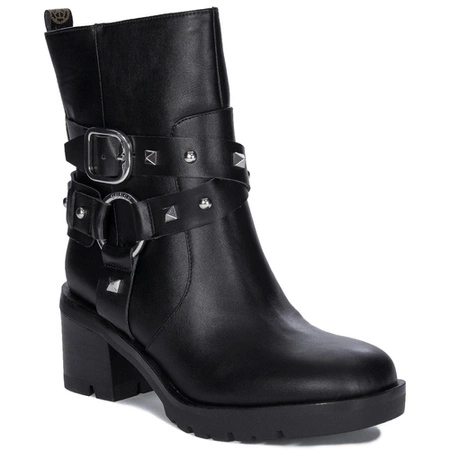 Filippo Botki Damskie Ocieplane Skórzane Czarne