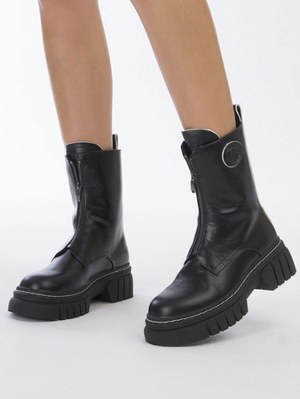 T.Sokolski Botki Damskie Na Platformie Ocieplane Skórzane Czarne