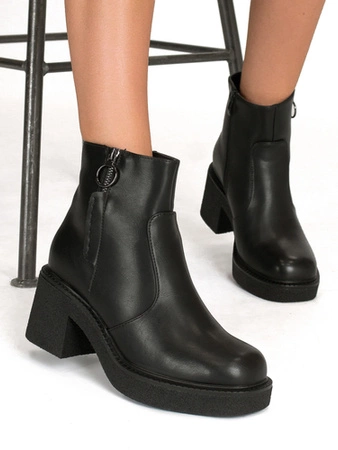Boccato Botki damskie skórzane na słupku ocieplane czarne