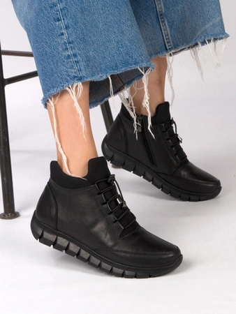 Maciejka Botki damskie skórzane na platformie czarne