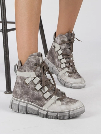 Maciejka Botki damskie skórzane na platformie jasny beż