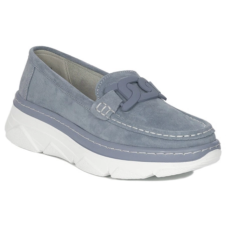 Venezia Półbuty damskie mokasyny skórzane lakier z łańcuchem Silver srebrne