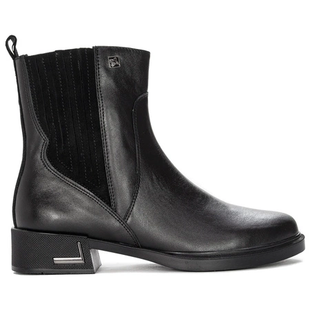Boccato Botki damskie skórzane na słupku ocieplane czarne