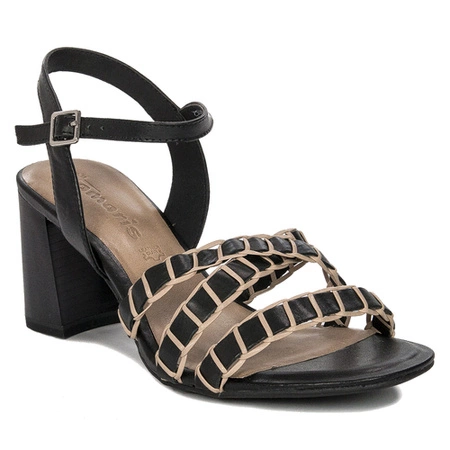 Tamaris Sandały damskie na słupku skórzane czarno beżowe Black/Nude
