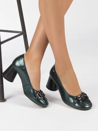 Maciejka Metaliczne Lordsy Skórzane z Welurowym Printem Zielone 06250-09/00-1