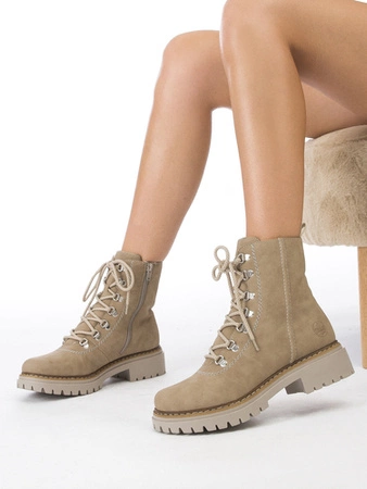 Rieker Botki damskie skórzane ocieplane Brown brązowe