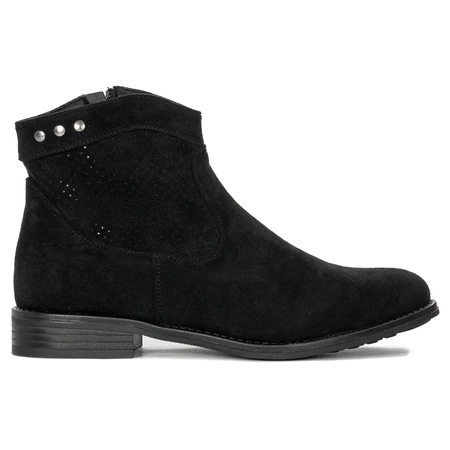 S.Barski Botki Damskie Ażurowe Płaskie Czarne