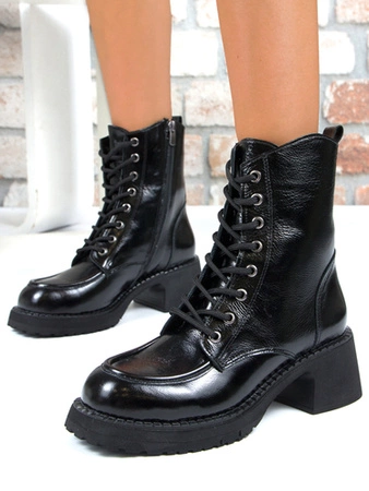 Boccato Botki damskie skórzane ocieplane czarne lakierowane