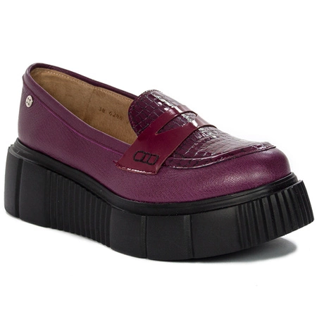 Maciejka Półbuty damskie skórzane wsuwane bordowe