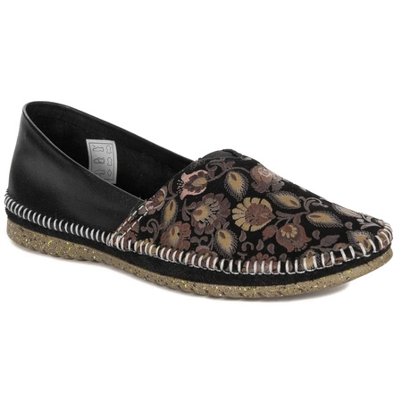 Maciejka Półbuty Damskie Skórzane Czarne Multi Kwiaty