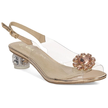 Sca'viola Sandały damskie na słupku z kryształkami GOLD-M złote