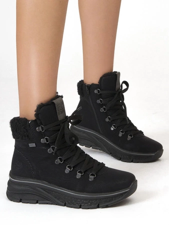 Rieker Botki Damskie Ocieplane Na Platformie Black