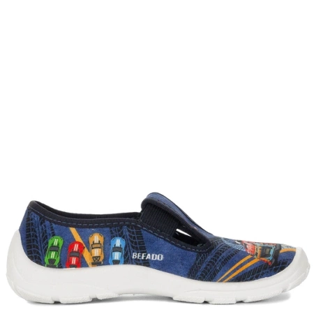 Befado Półbuty tenisówki chłopięce na rzepy Maxi granatowe samochodziki