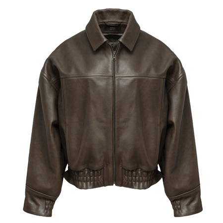 OPRA Skórzana Kurtka Bomberka Oversize Oliwka OP-KU-BOMBER-OLIVE