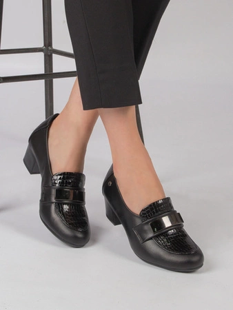 Maciejka Półbuty damskie skórzane Czarny Zamsz