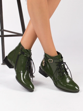Maciejka Botki Damskie Na Obcasie Skóra Naturalna Zielono - Czarne 06160-01/00-7