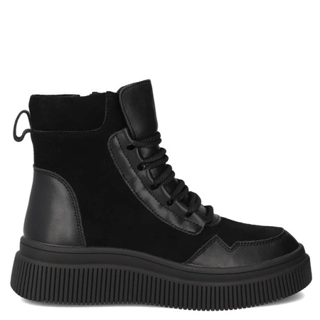 Maciejka Trzewiki Skórzane Ocieplane Damskie Czarne K7180-01/00-7