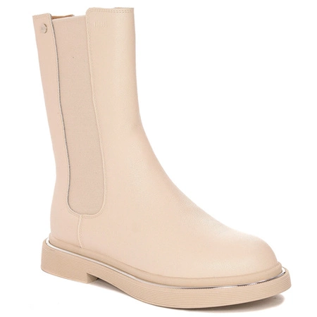 Maciejka Botki Damskie Skórzane Welurowe Jasny Beżowy
