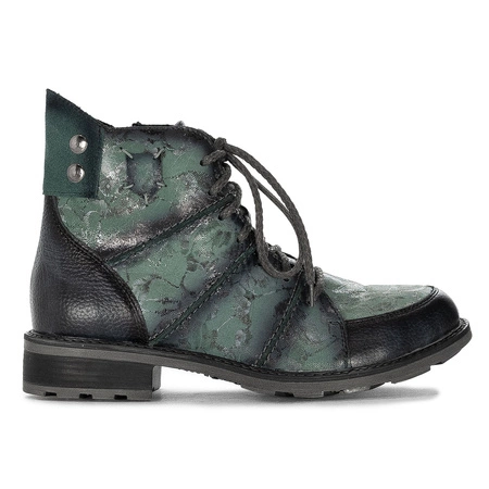 Maciejka Botki Damskie Skórzane Lakierowane Zielone