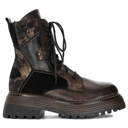 Maciejka Trzewiki Damskie Skórzane Czarno Złote
