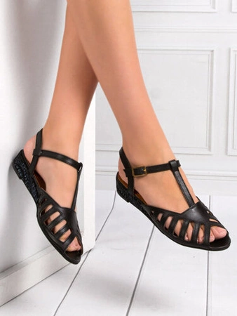 Rieker Półbuty damskie ażurowe na rzep Black czarne