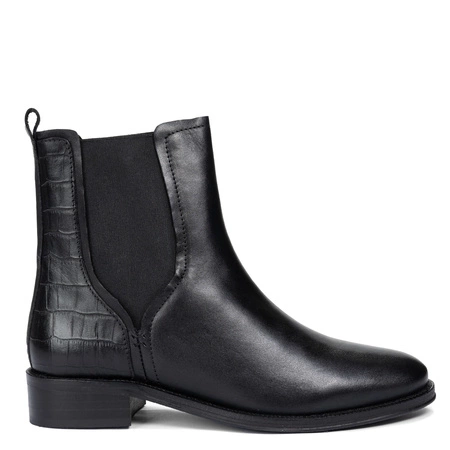 Maciejka Skórzane Botki Chelsea Z Tłoczeniem Kroko Czarne H7173-01/00-7