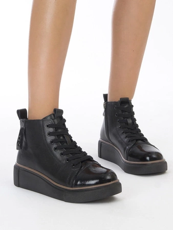 T.Sokolski Botki Damskie Ocieplane Skórzane Czarny Lakier