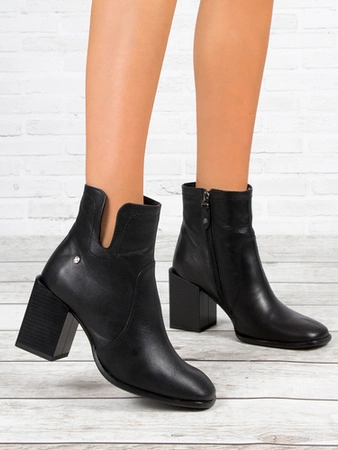 Maciejka Botki Damskie Na Słupku Skórzane Czarne