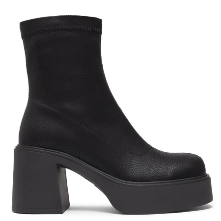 Boccato Asymetryczne Botki Na Klocku Z Suwakiem Czarne 3200-BLACK-GOLD