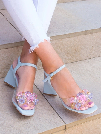 Visconi Sandały damskie na obcasie skórzane Żel+Błękit