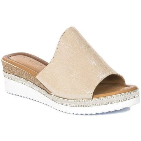 Venezia Klapki Damskie Na platformie Skórzane Beige Beżowe