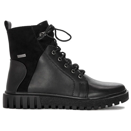 Artiker Botki damskie skórzane lakierowane ocieplane czarne