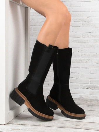 Kozaki damskie Maciejka welurowe Czarne Lico