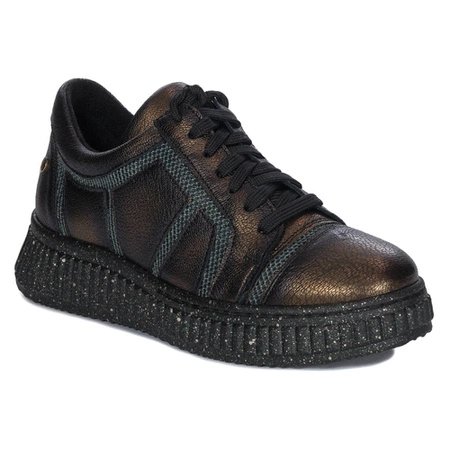 Maciejka Półbuty Damskie Na Platformie Czarny + Złoty