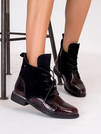 Remonte Botki damskie ocieplane lakierowane Black czarne