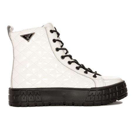 S.Barski Botki damskie na platformie ocieplane lakierowane White białe