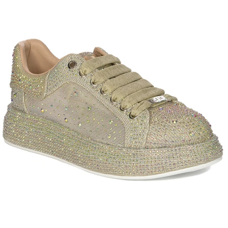 GOE Sneakersy damskie półbuty beżowe cyrkonie