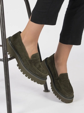 Maciejka Półbuty damskie skórzane zamszowe zielone